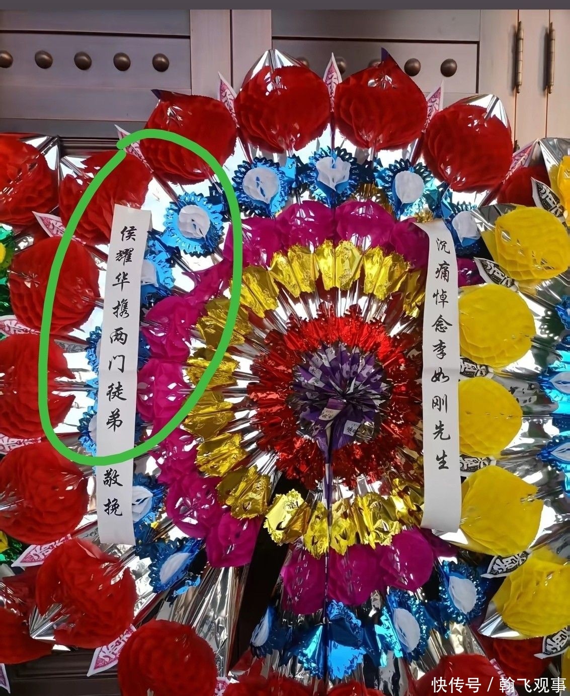 然而,在悼念现场,侯耀华所送花圈上赫然写着“携两门弟子”字样,再度激起网友广泛争议与质疑。