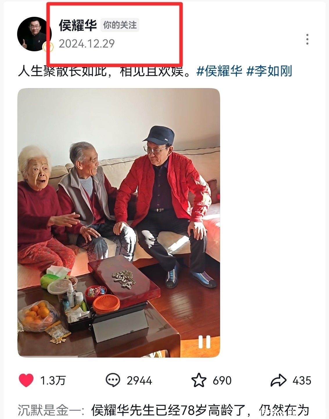 此前,侯耀华曾因试图借助李如刚促成杨议拜师一事,引发舆论风波,令年迈的李如刚承受不小压力。如今斯人已去,过往纷争也随之烟消云散,化作尘封记忆。