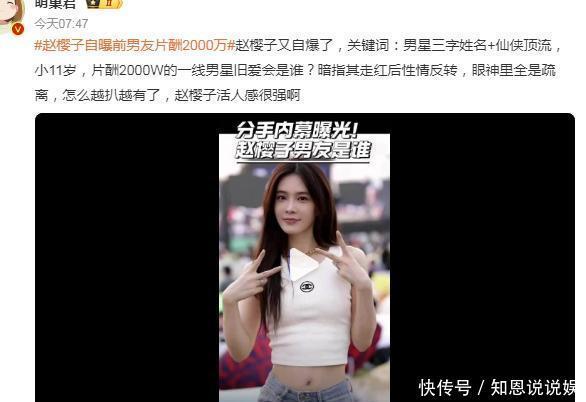 最近,赵樱子自曝前男友片酬2000万,引发热议!她透露:“他属于那种很会说话,他真的比我小11岁,他说我这辈子能和他在一起人生体验感都不一样了,粉丝见了他都是尖叫,我想感受一下他这么爱我,我就和他好了,刚开始很多惊喜,每天99多玫瑰,到后来就搞520特别日给我送了999朵鲜花,我让他别送我鲜花了,我这个人就很直接我说我就喜欢包,他说我太虚荣了,我说我平时赚钱也买这些包也不虚荣啊,他说他拍完这部戏片酬给我买,我说你一部戏2000万,赚啥片酬啊,就那个款项都够给我买个包了!”