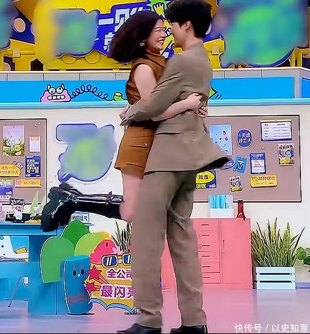 节目中他们重现了“抱抱的一百种打开方式”。