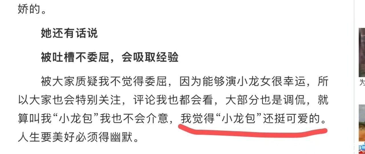 早年接受采访时她曾表示,即便被称作“小龙包”,也不会感到委屈。
